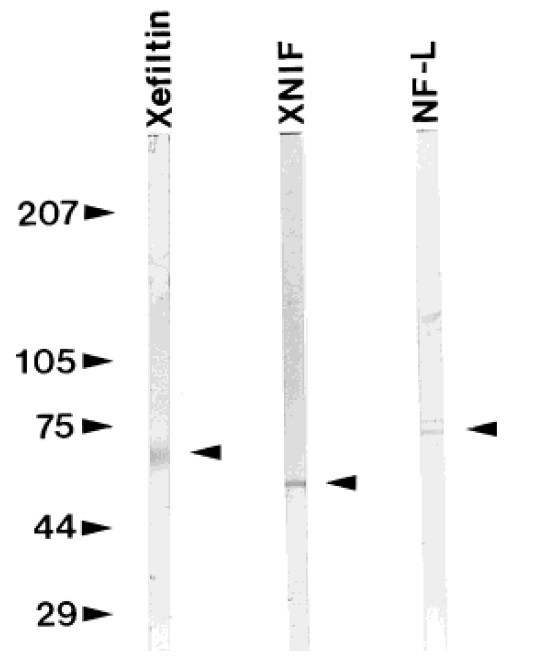 xefiltin, XNIF, and Xenopus NF-L. Labeled arrowheads