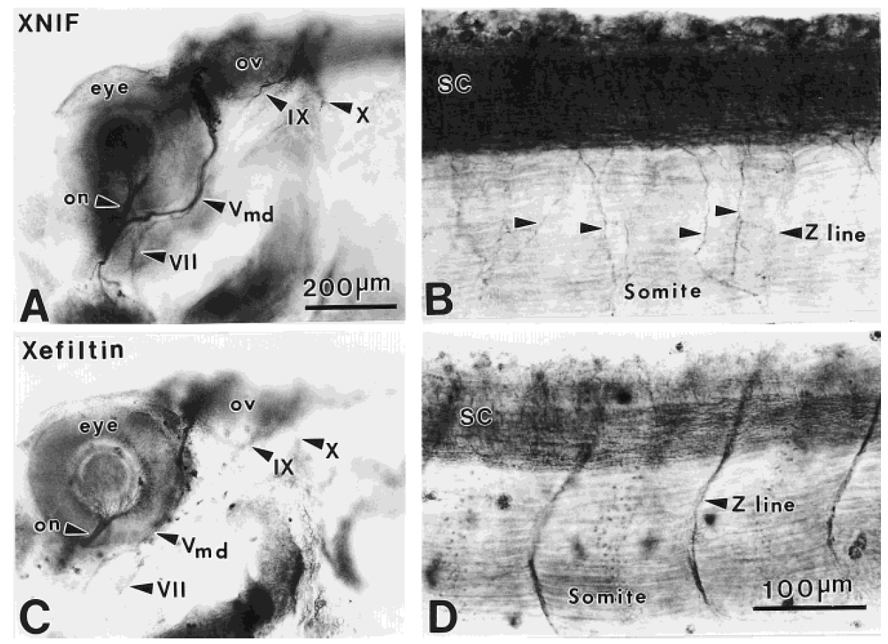 Figure 4 Comparison of XNIF (A, B) and xefiltin (C, D) immunostaining in whole-mount