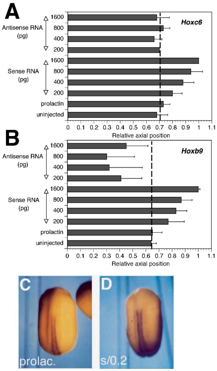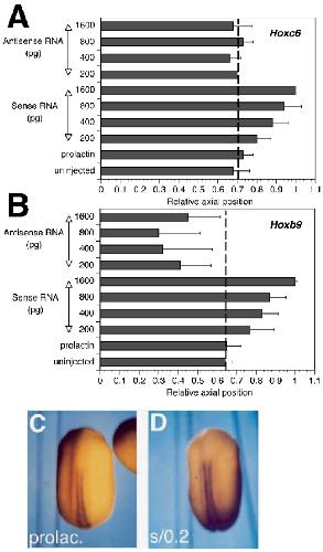 injected with 1.6 ng of sense Hoxd-1 RNA (B) and 0.8 ng of Hoxb-4