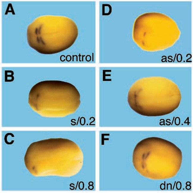 (E) of antisense Xcad-2 RNA shows the reorganization of the head