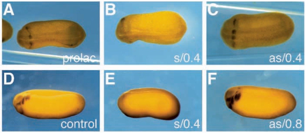 embryo injected with prolactin mRNA. (B) Embryo injected with 0.2