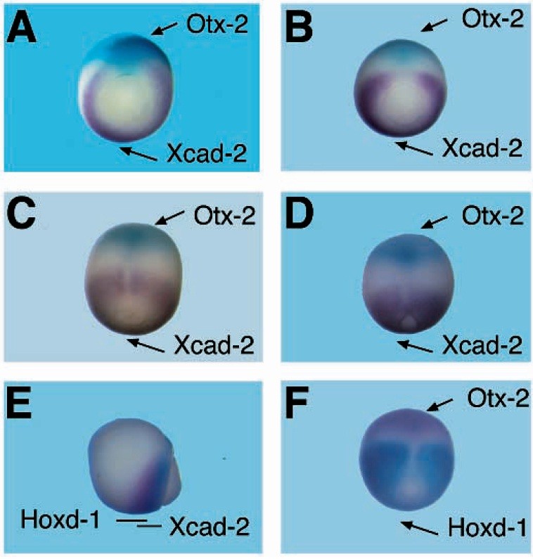 the patterns of expression if Xcad-2, Otx-2 and Hoxd-1. Double in