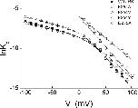 Figure 13. Predicted blocking properties of mutant channels lacking the shallow or the deep TEA-binding site. The identical solid curves represent a fit of Eq. 1a to the plot of lnappK versus Vm for wild-type channels, taken from Fig. 2 C. The dotted line in A is a simulation of the model with only the shallow site using the first term of Eq. 1a (K1 = 2.21 × 10−4 M and Z1 = 0.47), whereas the dotted line in B is a simulation of the model with only the deeper site using the second term of Eq. 1a (K1K2 = 1.02 × 10−3 M, Z1 = 0, and Z2 = 1.61). All values of the parameters used in the simulations were taken from Fig. 2 C, except Z1 in B, which was set as zero. The dashed line in B is the limiting slope of the steep phase.