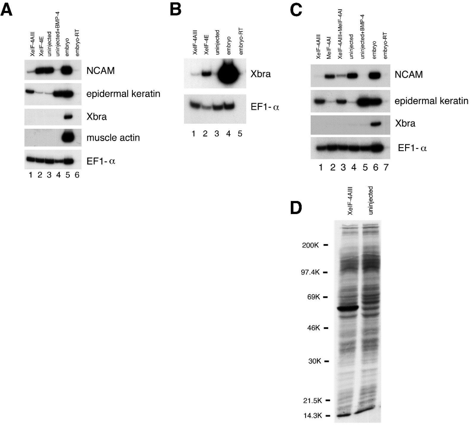 epidermis by XeIF-4AIII, but not MeIF-4AI, in dissociated ectoderm cultures. RNA