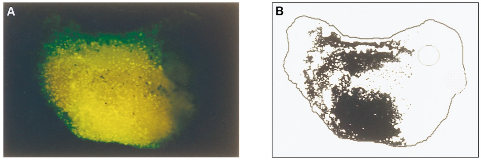 showing the distribution of the GFP. Other light areas of the embryo are due to autofluorescence of the yolk (dorsal side up).