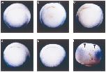 gland or the anterior of the embryo when the cement gland is absent as in the ventralized embryos in B, D, and F.