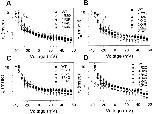 Figure 5. Effects of S4 mutations on steady state slow inactivation when fast inactivation is intact. Xenopus oocytes were injected with RNA encoding the wild-type sodium channel or each of the S4 mutants in the wild-type background, along with RNA encoding the β1 subunit. Currents were recorded as described in Fig. 3. The normalized peak current during the test pulse is plotted against the prepulse potential. Data are shown for the mutants in domains I (A), II (B), III (C), and IV (D). Data for the double mutants are shown in B and D. The data points represent the means of at least three determinations and the error bars show the standard deviations. The smooth lines are fits to a two-state Boltzmann function, as described in materials and methods. The parameters of the fits are included in Table III.