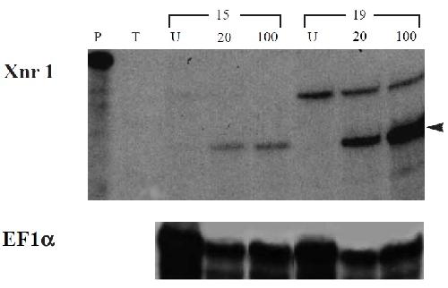 product (arrowhead) those derived from pXEX/Xnr-1. EF-1a was