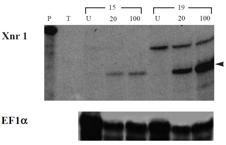 used as a loading control. P, 480 bp Xnr-1 probe; T, tRNA control.