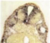 qki ( QKI, KH domain containing, RNA binding ) gene expression in Xenopus laevis embryos, NF stage 30, as assayed by in situ hybridization, cross section through the head, anterior up. |
