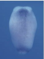 msx1 (msh homeobox 1) gene expression in Xenopus laevis embryo via in situ hybridization, NF stage 11, lateral view, anterior up, dorsal right.