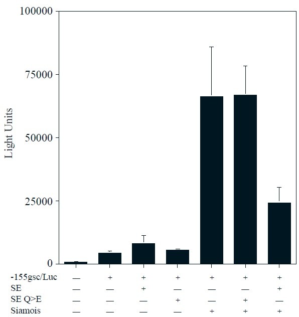 Fig. 6. SE inhibits Siamois-mediated activation of a goosecoid