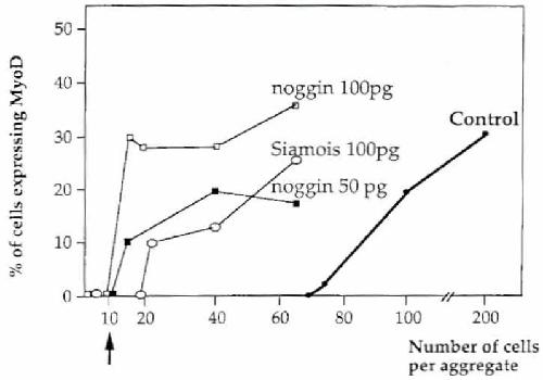 Fig. 3. Siamois and noggin reduce the size of a reaggregate required