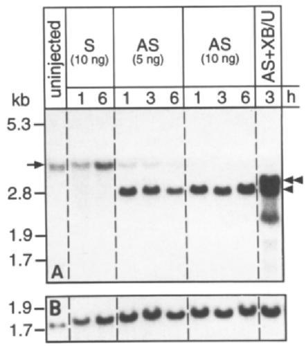 (S) injected oocytes (arrow). A breakdown product of 2.7 kb appears