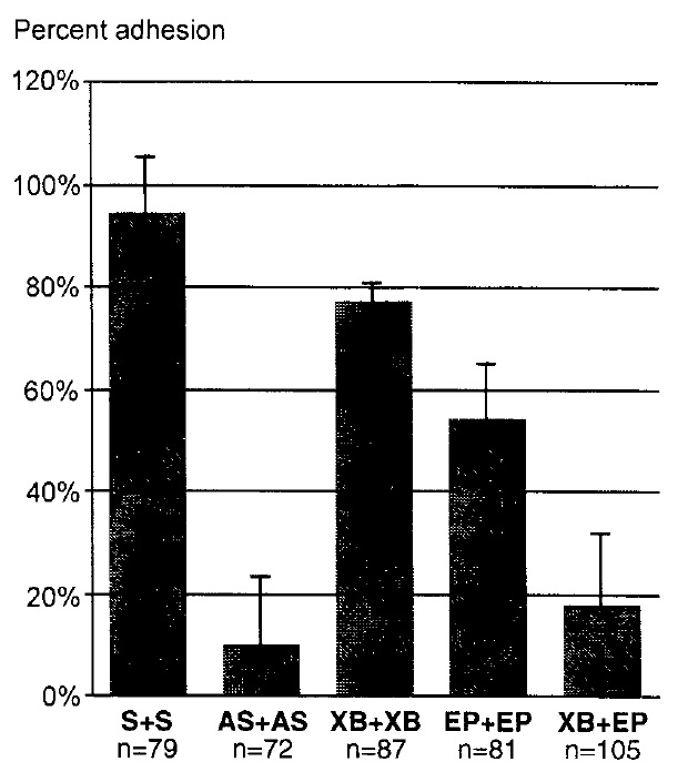 The bars indicate the percentage of oocyte pairs displaying adhesion after