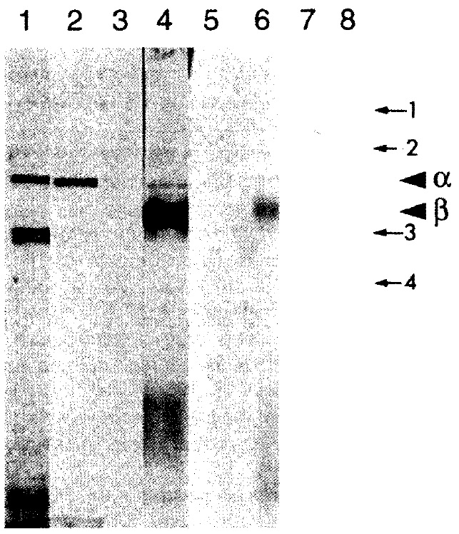 and 6, MAb against xTR~ peptide; 7 and 8, control MAb against
