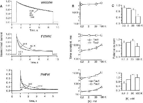 Levy, Recovery from C-type inactivation is modulated by extracellular potassium. 1996, Pubmed