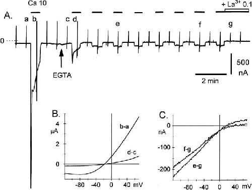 Parekh, Depletion of InsP3 stores activates a Ca2+ and K+ current by means of a phosphatase and a diffusible messenger. 1993, Pubmed , Xenbase