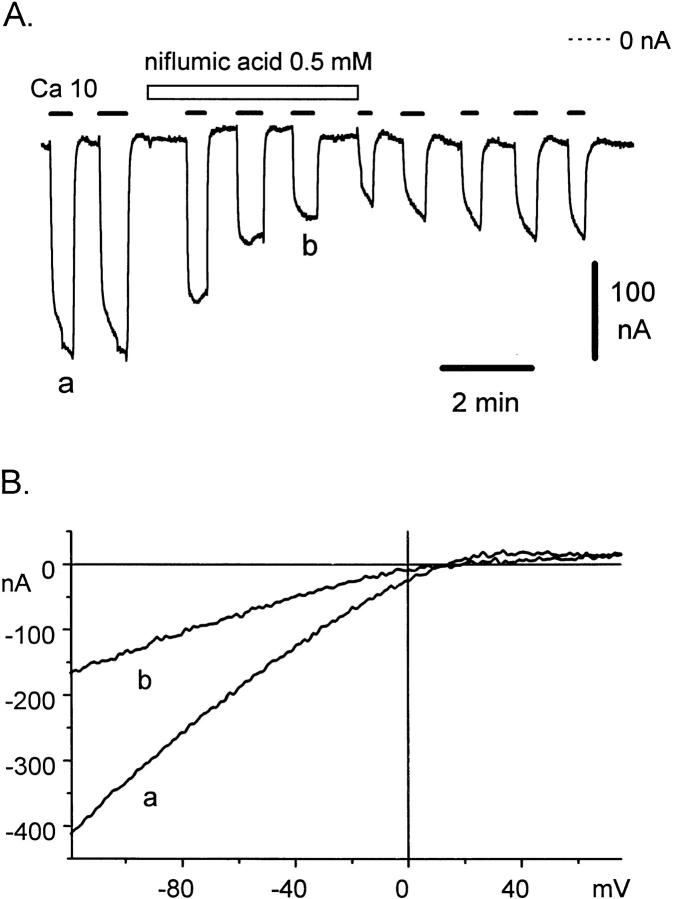 White, Niflumic and flufenamic acids are potent reversible blockers of Ca2(+)-activated Cl- channels in Xenopus oocytes. 1990, Pubmed , Xenbase