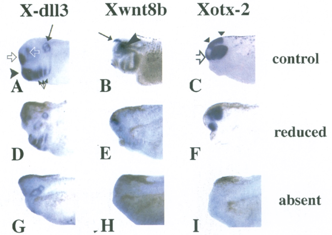 structures are reduced or absent in the lithium-treated and Xwnt-8-misexpressing embryos. The scale of the extent of posteriorization