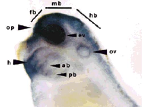 Xenopus LIM motif-containing protein kinase, Xlimk1, is expressed in the developing head structure of the embryo.