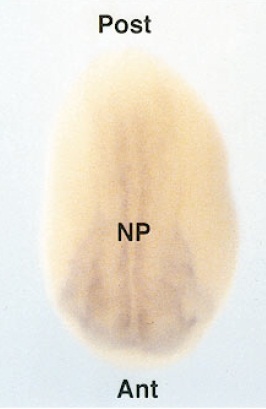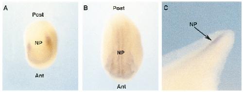C, stage 28 tailbud. Ant, anterior; Post, posterior; NP, neural plate.
