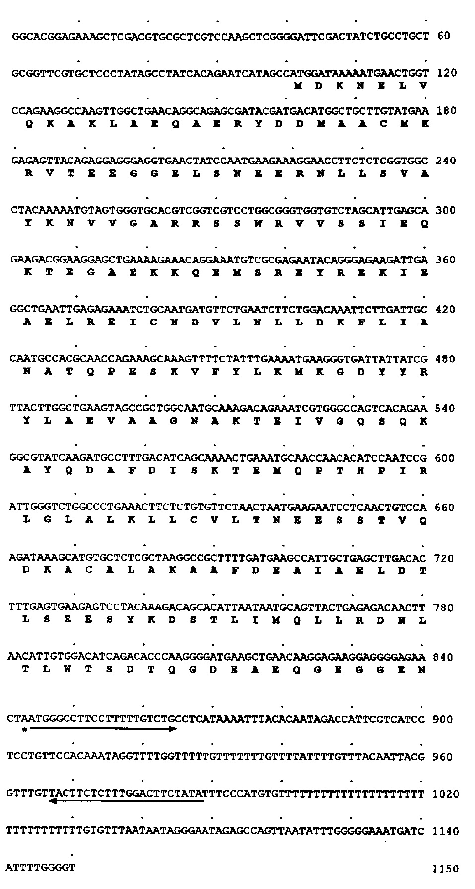Fig. 1. The nt sequence of the cDNA insert and the deduced aa sequence. The DNA was sequenced by the dideoxy chain-termination method