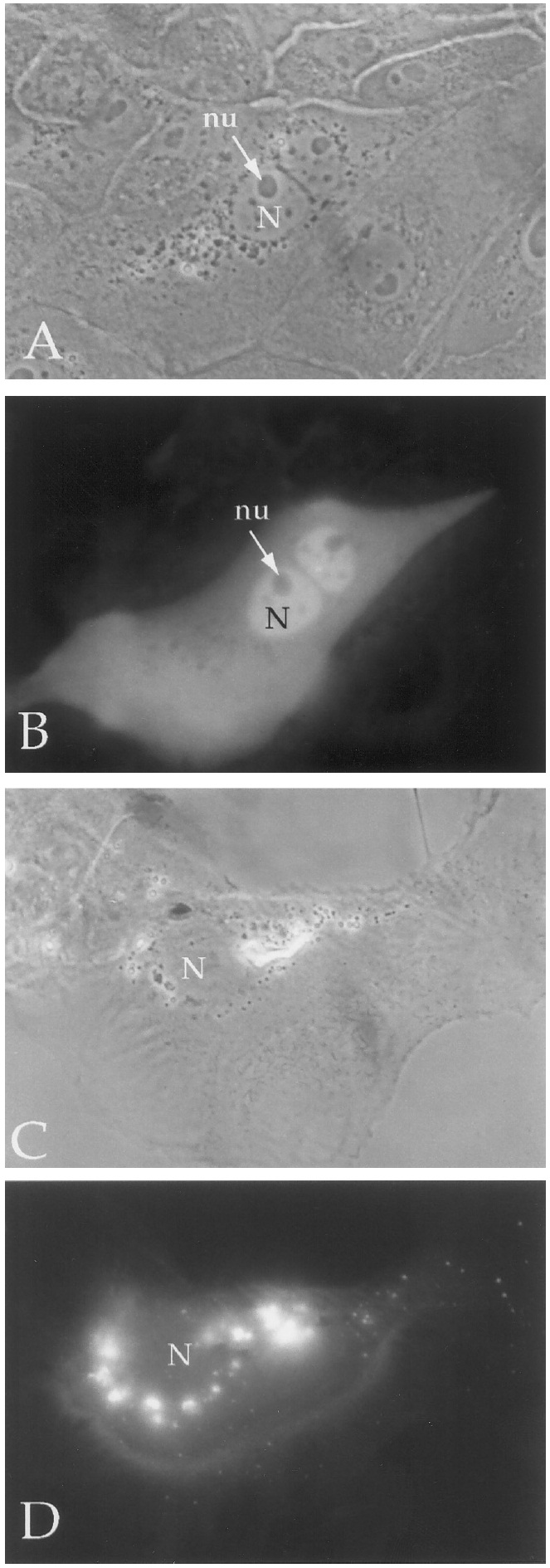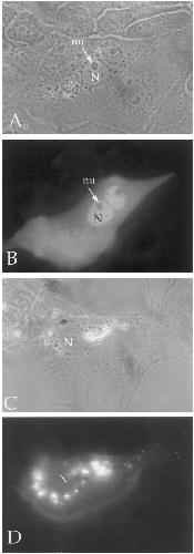 was excluded from nuclei (C, phase; D, fluorescein optics);