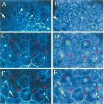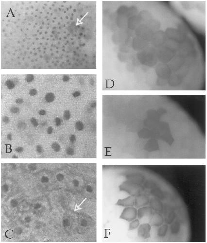 embryos, the only cells with apparently cytoplasmic staining (A) lack discrete nuclei (arrow) and appear to be in mitosis. In