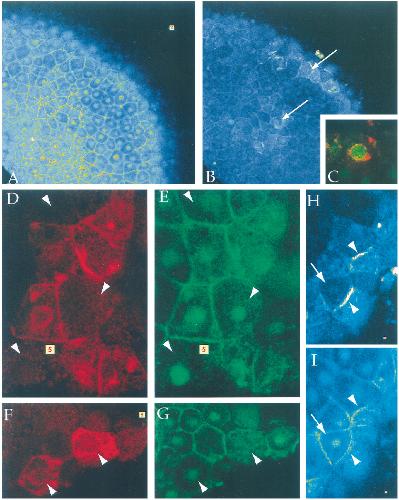 at the cellular periphery (arrow). The punctate staining seen