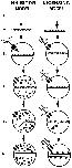 Figure 7. Comparison between the inhibitor and licensing models. In the inhibitor model, proteins required for potentiating DNA replication (shaded circles) bind to DNA when cdk2 activity is low. In Xenopus eggs this occurs at the end of mitosis before nuclear formation, when cdk2–cyclin E activity is dilute (1 and 2). In somatic cells this would occur during early G1 when cdk2–cyclin E is inactive. After nuclear formation, cdk2–cyclin E (black squares) is rapidly transported into nuclei and accumulates (4). Replication potentiating proteins which enter the nucleus (black circles) are prevented from associating with DNA due to the high nuclear concentration of cdk2–cyclin E. However, the nuclear cdk2 does not displace potentiating proteins which are prebound to DNA. Similarly in somatic cells, activation of nuclear cdk2–cyclin E or A kinases during late G1 would block any further potentiation of DNA for replication. During DNA replication the potentiating proteins are displaced from DNA and prevented from rebinding DNA by the presence of high concentrations of cdk2 kinase activity (5 and 6). In the licensing model, proteins (shaded circles) required for DNA replication associate with DNA at the end of mitosis (1 and 2). Because these proteins cannot enter the nucleus, enclosure of the DNA within the nucleus blocks further licensing (3 and 4). As a result of DNA replication the licensing proteins are converted to an inactive state (5 and 6).