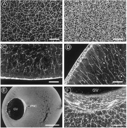 animal (B) cortices of stage VI oocytes stained with C11 antibodies reveal complex networks of CK filaments in the cortices of both