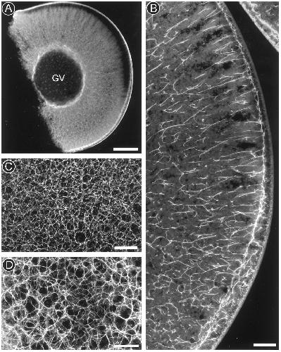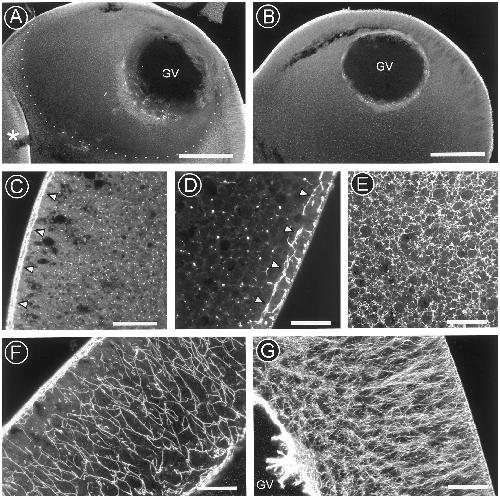 CK filaments. (B) A projection of 13 optical sections of the animal cortex and subcortical cytoplasm of a CB-treated oocyte (20 hr in 20