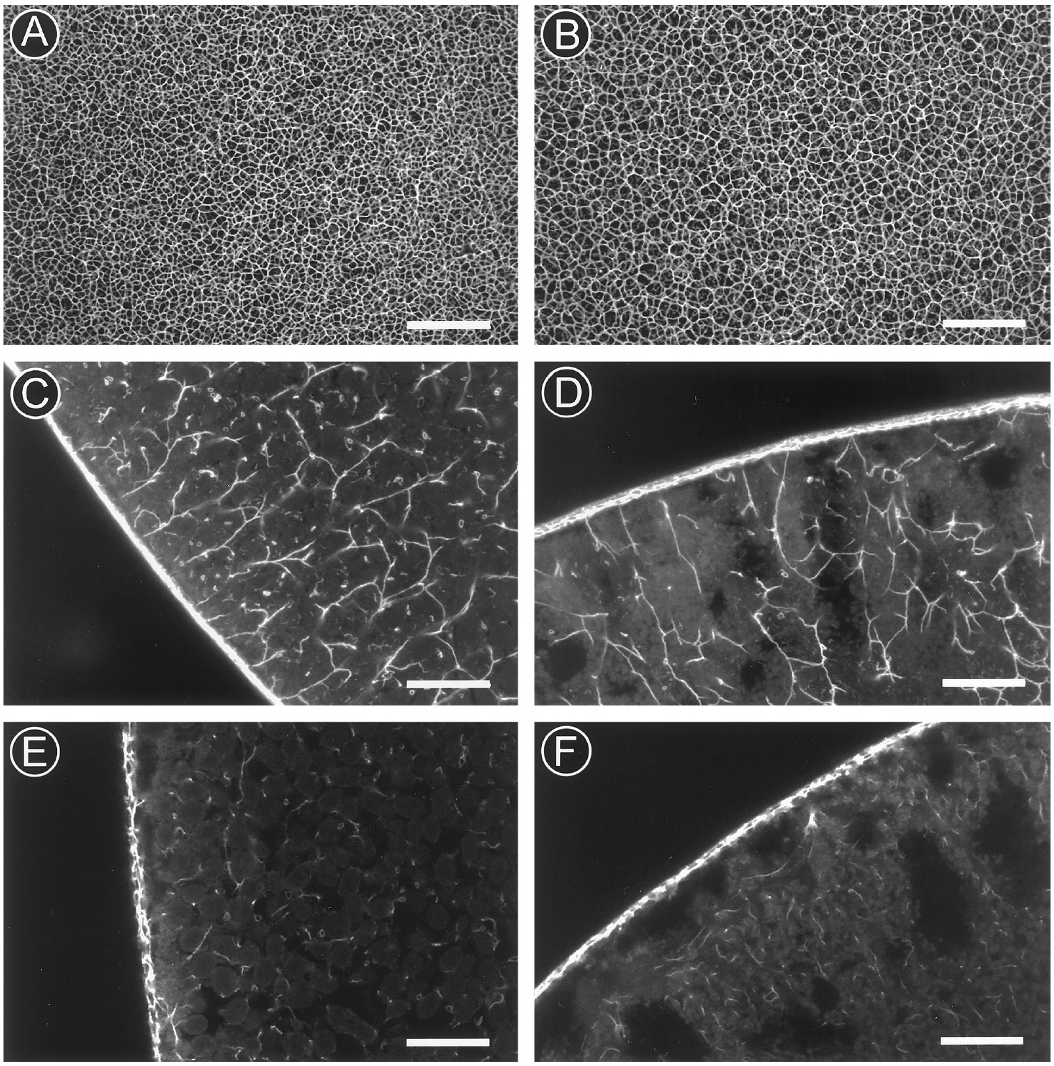 equal thickness of the CK network in the vegetal and animal cortices. (E and F) Cross-sectional views (single optical sections) of the