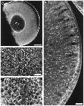 transverse connections between the radially oriented CK filaments in all three views. Asterisks in B denote obscuration of the CK filaments