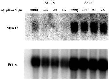Fig. 4. Northern blot probed for MyoD, a marker of dorsal