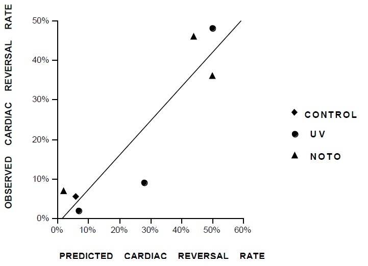observed cardiac reversal rates as defined by the equation y=0.866x -