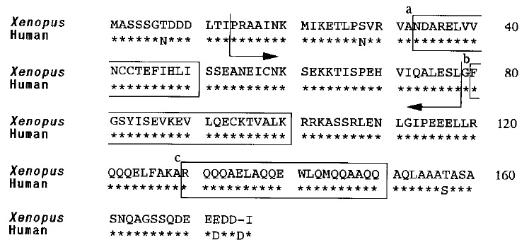 FIG. 2. Alignment of total amino acid sequences of Xenopus and