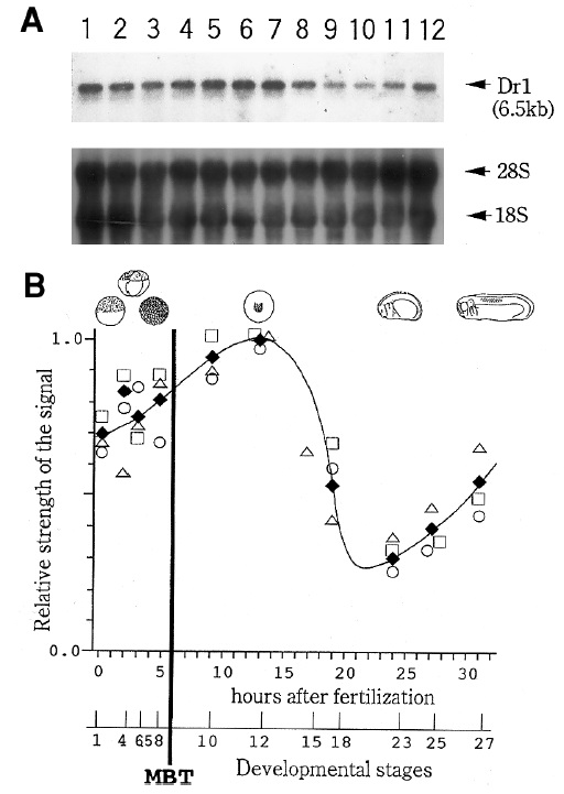 throught stages. The major band (6.5 kb) as Drl mRNA. and ISS