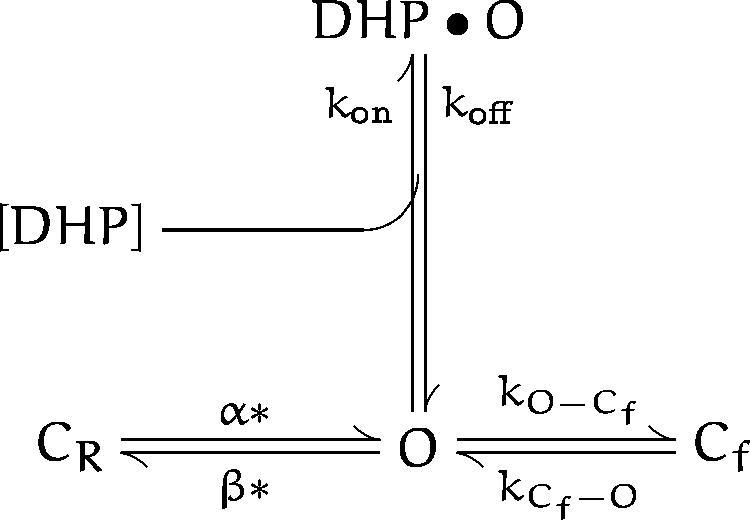 constants of nifedipine for ShBΔ6-46 T449V were used in simulation. ShBΔ6-46 T449V:A463I was simulated by stabilizing the open