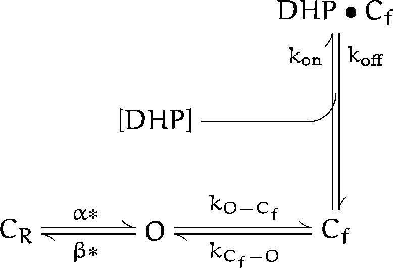 square root scaling on vertical axis (Sigworth and Sine, 1987). Single exponential fits are shown superimposed. (C) Reciprocals of