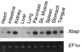 FIG. 7. RT-PCR analysis of Xbap expression in adult tissues. Total RNA was collected from the indicated adult organs and as- sayed for Xbap transcripts using gene specific primers as described under Materials and Methods. RT-PCR amplification of the ubiq- uitous EF-la sequence (visualized by ethidium bromide staining) was used as a control for RNA levels.