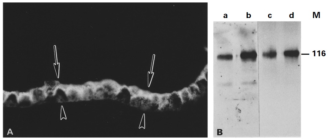 labeling of the basal epithelial surface (arrowheads). Polyclonal