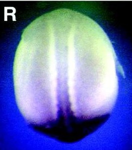 xmt MAX network transcriptional repressor) gene expression in Xenopus laevis embryo, assayed via in situ hybridization, NF stage 19, dorsal view, anterior down. |