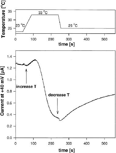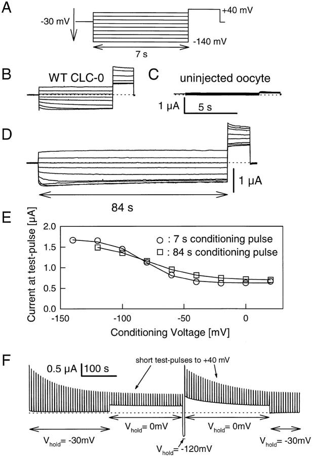 The chloride channel from the Torpedo electric organ, ClC-0, is the best studied member of a large gene-family (Jentsch, T.J. 1996. Curr. Opin. Neurobiol. 6:303-310.). We investigate the temperature dependence of both the voltage- and chloride-dependent fast gate and of the slow gate of the "double-barreled" ClC-0 expressed in Xenopus oocytes. Kinetics of the fast gate exhibit only a moderate temperature dependence with a Q10 of 2.2. Steady-state P(open) of the fast gate is relatively independent of temperature. The slow gate, in contrast, is highly temperature sensitive. Deactivation kinetics at positive voltages are associated with a Q10 of approximately 40. Steady-state open probability of the slow gate (P(open)slow(V)) can be described by a Boltzmann distribution with an apparent gating valence of approximately 2 and a variable "offset" at positive voltages. We note a positive correlation of this offset (i.e., the fraction of channels that are not closed by the slow gate) with the amount of expression. This offset is also highly temperature sensitive, being drastically decreased at high temperatures. Paradoxically, the maximum degree of activation of the slow gate also decreases at higher temperatures. The strong temperature dependence of the slow gate was also observed at the single channel level in inside-out patches. The results imply that within a Markovian-type description at least two open and two closed states are needed to describe slow gating. The strong temperature dependence of the slow gate explains the phenotype of several ClC-0 point-mutants described recently by Ludewig et al. (Ludewig, U., T.J. Jentsch, and M. Pusch. 1996. J. Physiol. (Lond.). In press). The large Q10 of slow gating kinetics points to a complex rearrangement. This, together with the correlation of the fraction of noninactivating channels with the amount of expression and the fact that the slow gate closes both protochannels simultaneously suggests that the slow gate is coupled to subunit interaction of the multimeric ClC-0 channel.