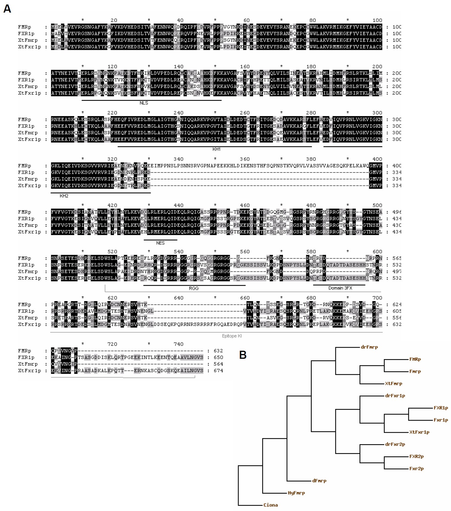 Two members of the Fxr gene family, Fmr1 and Fxr1, are differentially expressed in Xenopus tropicalis.