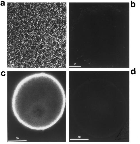 (d). (a and c) Control untreated oocytes showing the presence of intact microtubules and actin microfilaments, respectively.