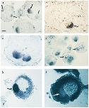 diplotene stage oocytes (arrow points to unstained pre-mitochondrial cloud). Each bar represents 10 mm.