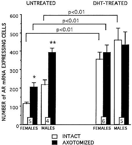 animals had significantly more AR mRNA-expressing cells in the axotomized