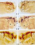 Map1a (Map-1) gene expression in Xenopus laevis embryo via immunohistochemistry, NF stage (37-38), lateral view, anteriorright, dorsal up.
